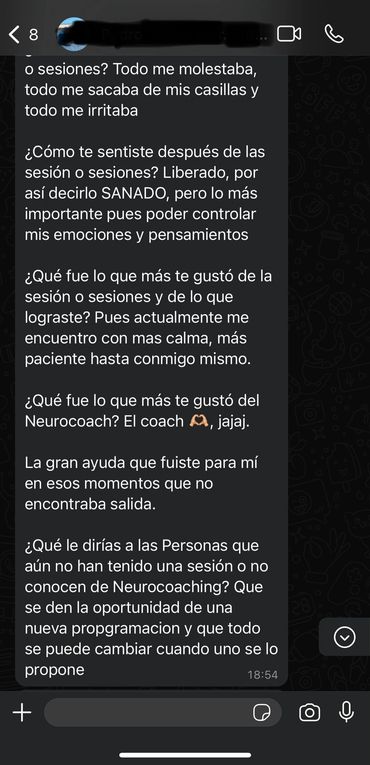 "Muy bien a lo largo del proceso ME HIZO DESCUBRIR MUCHAS COSAS DE MÍ que me han servido para lograr la meta, a pesar de los avances se preocupa por problemáticas nuevas y trabaja en ellas. Está muy preparado en lo que hace y dice, las dinámicas son muy importantes para el proceso de llegar a la meta. ME HACE TENER CONFIANZA en lo que hago y a su vez pueda guiar a mi equipo. Sabe aprovechar la sesión, ver problemas y avances, implementar actividades acordes y dejar una enseñanza. Me hace SER MÁS OBJETIVO en lo que tengo que hacer, como le puedo hacer y con seguimiento puntual para lograrlo. Es un Coach sobresaliente, con preparación, escucha, es empático, HACE QUE YO MISMO VEA LAS COSAS DE OTRA MANERA para lograr llegar a un plan. Buenas intervenciones, sabe encaminar la conversación hacia el punto deseado para establecer acciones. Hace reflexionar en lo que estamos haciendo. De calidad, con factor humano en la conversación."